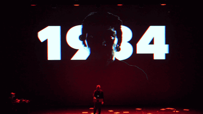 De sa voix profonde, Nicolas Martel endosse tous les rôles et colle aux personnages du roman avec une justesse qui nous fait froid dans le dos. La musique live et les vidéos signées Rubin Steiner s’accordent pour mettre la pression et faire monter l’angoisse, nous catapultant, sans ménagement, dans ce monde de la novlangue, de la double pensée et des télécrans. Anticipation ou science-fiction ?